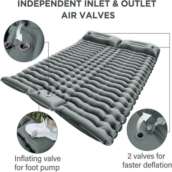A: Poduszka w materacu dmuchanym Aid to zintegrowana konstrukcja z dwoma podwójnymi zaworami.
