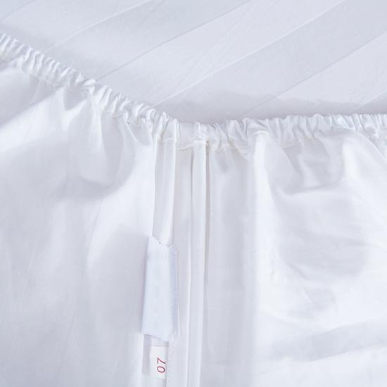 Trwały komfort: w tkaninie zastosowaliśmy specjalną bawełnianą satynę 4-1-under z pojedynczym wgłębieniem, aby zapewnić jej naturalność i oddychalność. Zapewnia ona wystarczająco dużo miejsca i zrównoważoną temperaturę, aby Twoja skóra czuła się zrelaksowana i aktywna przez całą noc.