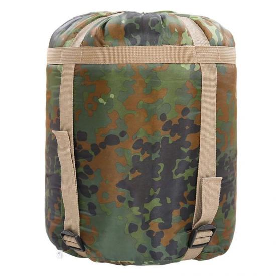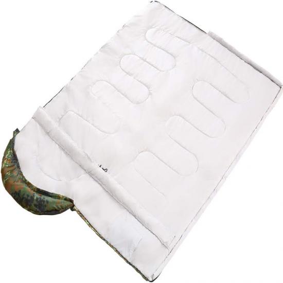 Wypełnienie śpiwora w chińskiej fabryce to włókno poliestrowe o gramaturze 400 GSM i odporności na temperaturę 20 stopni Fahrenheita. Do wyboru są kolory: błękitny, ciemnoszary, czerwony, wzór kamuflażowy na lewym suwaku oraz fioletowo-pomarańczowy, zielony i wojskowy zielony na prawym suwaku.