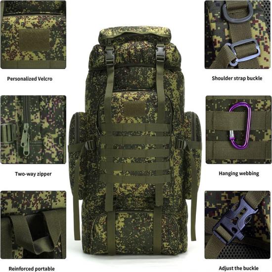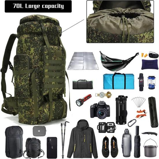 Przystępne ceny, dobrej jakości, wodoodporny plecak 70L, odporny na zarysowaniaTen plecak jest wykonany z wysokiej jakości tkaniny Oxford 900D, która jest trwała i wytrzymuje duże obciążenia. Ergonomiczne szelki i wyściełany panel tylny zapewniają maksymalny komfort nawet podczas noszenia ciężkich ładunków.