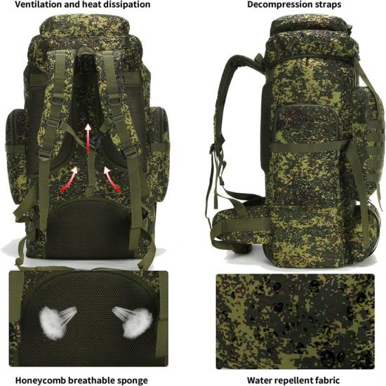 Ten 70-litrowy plecak wojskowy z oddychającą podszewką wykonany jest z tkaniny Oxford 900D, która jest nie tylko wodoodporna i rozrywalna
