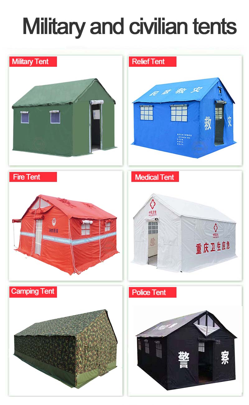 Stworzony z myślą o pomocy w sytuacjach kryzysowych, zastosowaniach wojskowych, służbach medycznych, darowiznach ONZ, rezerwach rządowych i operacjach Czerwonego Krzyża, ten namiot jest uosobieniem niezawodności. Wykonany z solidnych i trwałych materiałów, doskonale sprawdza się w ekstremalnych warunkach pogodowych. Szeroka gama kolorów, dopasowana do indywidualnych potrzeb, oraz prosty montaż umożliwiają szybki montaż w nagłych wypadkach. Przestronne wnętrze z łatwością pomieści wiele osób i niezbędne zapasy, co czyni go niezbędnym i wszechstronnym rozwiązaniem w każdej sytuacji kryzysowej, niezależnie od tego, czy zapewnia schronienie osobom dotkniętym klęską żywiołową, czy funkcjonalną bazę dla zespołów medycznych w trudnych warunkach.