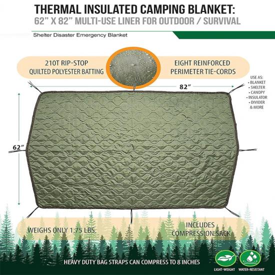 Podszewka poncza przeciwdeszczowego Aid Rain w niskiej cenie Materiał: Oprócz podstawowej funkcji utrzymywania ciepła i wytrzymywania większości warunków atmosferycznych, namiot ten może być również używany jako szybko schnący tymczasowy namiot survivalowy, markiza, izolacja hamaka, poduszka, przegroda namiotu, ekran zapewniający prywatność, narzędzie do przenoszenia w sytuacjach awaryjnych, pomoc w przypadku klęsk żywiołowych, ukryty bunkier, do przenoszenia torebki, śpiwora lub izolacji namiotu oraz do innych zastosowań o szerokim zakresie zastosowań.