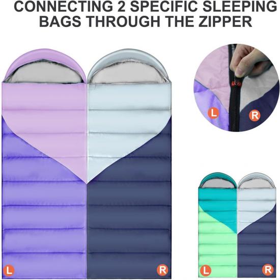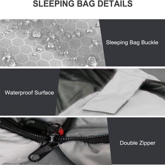 Śpiwór wykonany z poliestru o wadze 1,8 kg / 3,96 funta wyposażony jest w wysokiej jakości dwustronne zamki błyskawiczne, które się nie zacinają, a jego nóżki mają regulowane zamki, pozwalające regulować ilość ciepłego lub zimnego powietrza wchodzącego do śpiwora lub wychodzącego z niego. Oznacza to, że można je dostosować do indywidualnych potrzeb w różnych środowiskach i temperaturach. Całkowicie rozłożony śpiwór można wykorzystać jako koc, co znacznie zwiększa jego wszechstronność i praktyczność.