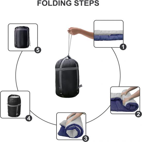 Lekkie opakowanie kompresyjne i zamek błyskawiczny śpiwora