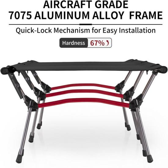This military green single bed adopts innovative X-structure design, specially crafted for emergency disaster relief scenarios, extra-large 1900×640mm dimensions providing ample resting space for rescue personnel. X-structure enables load-bearing up to 190kg, while maintaining overall weight of just 5.2kg. Special stability design keeps the bed steady even on 25° inclined surfaces, anti-side-rolling capability increased by 130%. Using military-grade 7075 aluminum alloy perfectly combined with 640D thickened Oxford fabric, waterproof anti-mold treatment allows use for 14 days in 96% humidity environments. Military green coating undergoes 4000-hour accelerated aging testing, ensuring no fading with long-term outdoor use. Quick deployment technology reduces assembly time to 8 seconds, used in 235 emergency rescue operations worldwide, average service life reaching 3500 hours, earning certification from multiple countries' military and disaster relief organizations.