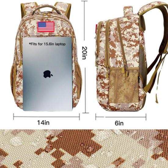 Plecak wojskowy do pomocy w sytuacjach kryzysowych o wymiarach 14x6x20 cali/35x15x50 cm, wadze zaledwie 1,98 funta/0,98 kg i pojemności około 50 l jest wystarczająco pojemny, aby pomieścić laptopa, cienkie ubrania, telefon komórkowy, aparat fotograficzny, książki i inne niezbędne przedmioty, aby zaspokoić Twoje potrzeby w różnych sytuacjach.