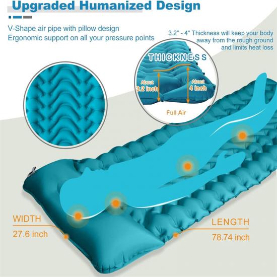 Unikalna konstrukcja w kształcie litery V dmuchanej maty do spania Rescue Disaster Durable w połączeniu z ergonomią