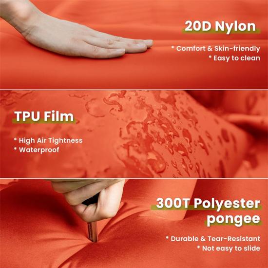 Ta dmuchana mata ratunkowa Portability Emergency wykonana jest z podwójnie pogrubionego nylonu 20D i pianki poliestrowej 300T,