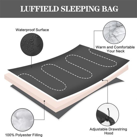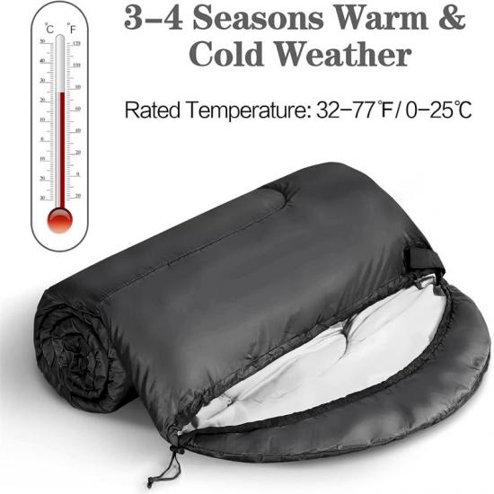 A: Śpiwór awaryjny wykonany z poliestru 290T z zamkiem błyskawicznym po prawej stronie umożliwia połączenie dwóch produktów ze sobą, tworząc większą przestrzeń odpowiednią dla dwóch osób.