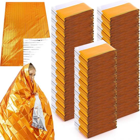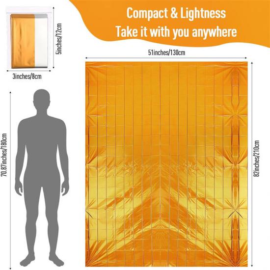 Niezbędne do przetrwania: Ten Produkt ratunkowy Folia aluminiowana PET Koc foliowy to dobrze zaprojektowany i praktyczny zestaw przetrwania. Wykonany jest z wytrzymałej folii aluminiowanej PET o umiarkowanych wymiarach około 82 x 51 cali / 210 x 130 cm, która całkowicie okrywa ciało, zatrzymując 90% ciepła użytkownika i zapobiegając hipotermii i wstrząsowi. W nagłych wypadkach ten odporny na ciepło koc zapewnia ciepło i ochronę.