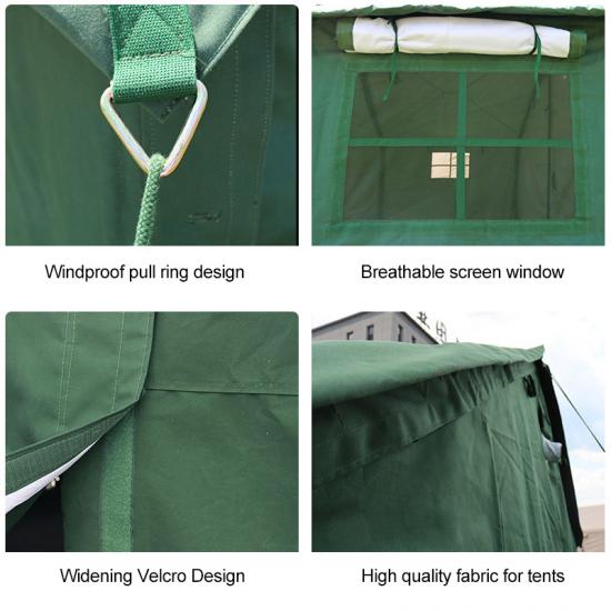Ten zielony namiot rządowy firmy YRF został zaprojektowany z myślą o potrzebach rządu w terenie, w sytuacjach awaryjnych i w biurze. Jest wodoodporny (4000 mm) i odporny na rozdarcia, a jego stabilna rama ze stopu aluminium zapewnia niezawodną przestrzeń roboczą.