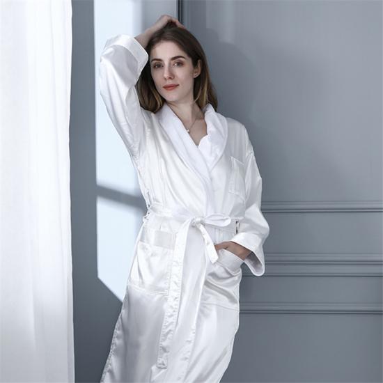 Szlafrok do spania Tencel Satin White, do użytku hotelowego, na lato i zimę, miękki i chłonny |