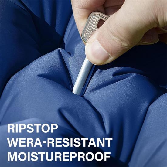 A: Podwójna dmuchana mata do spania w nagłych wypadkach jest wykonana z nylonu 40D, odpornego na ścieranie i nie