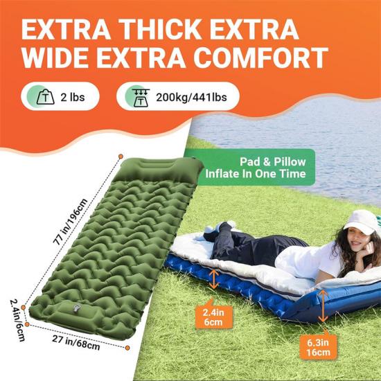 Bardzo gruba powłoka, nadmuchiwana mata do spania, lekki rozmiar, szybkie napompowanie, łatwość przenoszenia i inne cechy sprawiają, że jest to