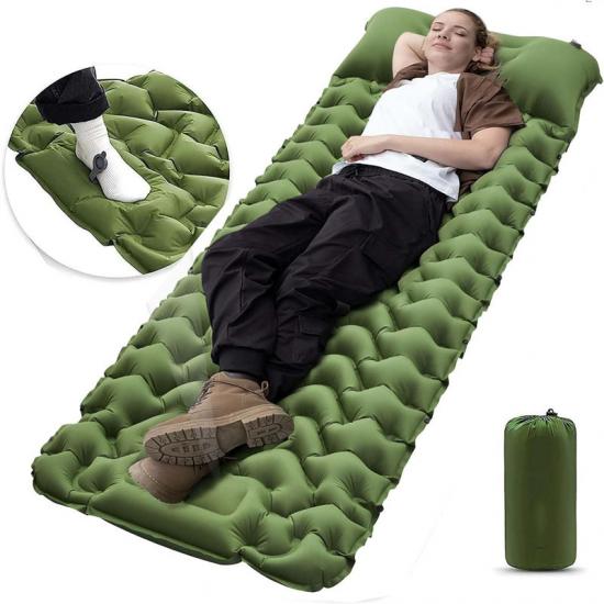 Ta nadmuchiwana mata do spania jest wyposażona we wbudowaną pompkę nożną, którą można napompować w mniej niż 30 minut.