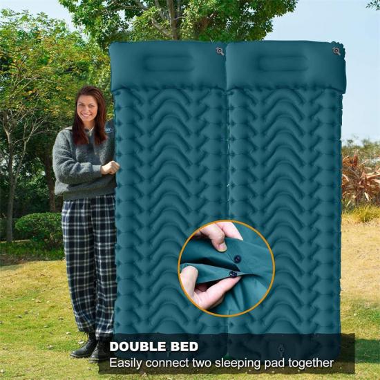 A: Nadmuchiwana mata do spania wyposażona jest w zatrzaski po obu stronach, co ułatwia łączenie dwóch mat