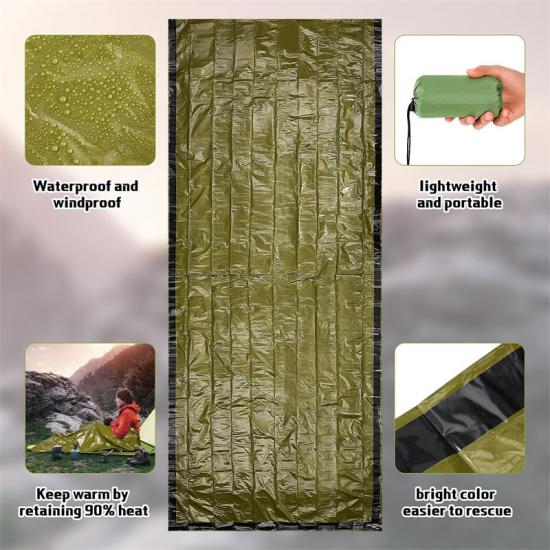 Skuteczna izolacja: Odbijając 90% ciepła ciała, ten rządowy śpiwór survivalowy w niskiej cenie nadal zapewnia doskonałą izolację w ekstremalnych warunkach pogodowych, dzięki czemu możesz odpocząć spokojnie.