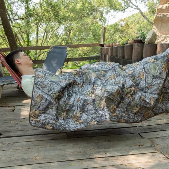 MATERIAŁ I KOLOR: Materiał koca nylonowego ma wzór kamuflażowy z jednej strony i ciemny kolor khaki z drugiej strony, dzięki czemu jest łatwy w użyciu w różnych środowiskach i celach.