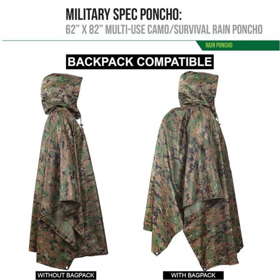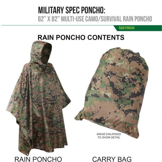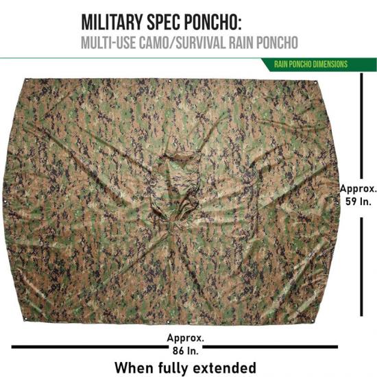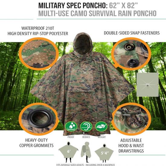 Po drugie, w scenariuszach zastosowań wojskowych ocieplenie płaszcza przeciwdeszczowego nie tylko chroni przed deszczem, ale może być również wykorzystywane jako narzędzie do ukrycia się. Tkanina z poliestru ripstop o wysokiej gęstości i powleczona poliuretanem zapewnia doskonałą wodoodporność, jednocześnie redukując otarcia i hałas. Łatwość noszenia i regulacji poncza sprawiają, że idealnie sprawdza się ono podczas operacji taktycznych.