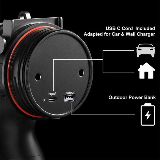 Wysokiej jakości lampa awaryjna do pomocy w sytuacjach kryzysowych. Wyposażona w akumulator o dużej pojemności 9000 mAh, zapewnia długotrwałe, ciągłe oświetlenie, spełniając wszelkie potrzeby związane z oświetleniem zewnętrznym lub awaryjnym. Inteligentny układ elektroniczny z wieloma funkcjami zabezpieczającymi, w tym przed przeładowaniem i nadmiernym rozładowaniem, zapewnia bezpieczne i stabilne ładowanie innych urządzeń inteligentnych, gdy jest używana jako mobilne źródło zasilania.