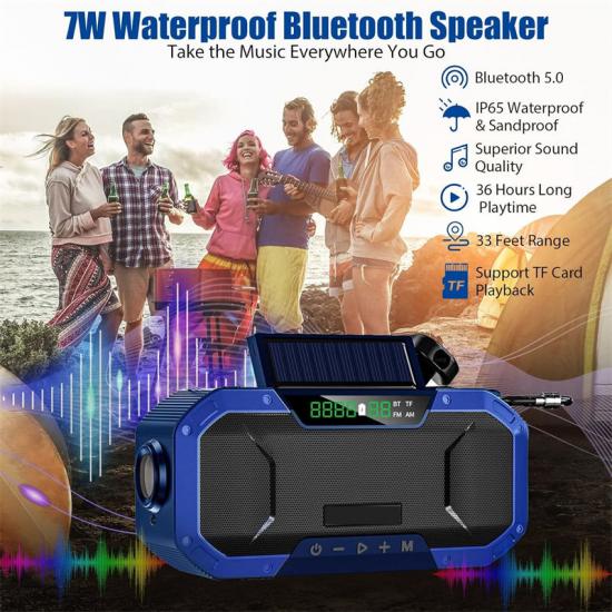 Radio z funkcją ładowania słonecznego Emergency Preparedness Radio Solar Charging to nie tylko tradycyjne radio AM/FM, ale także radio pogodowe NOAA. Wbudowany akumulator o pojemności 5000 mAh. Zapewnia do 36 godzin odtwarzania, to radio z korbką posiada 3 źródła zasilania. Ładowanie przez USB jest głównym źródłem zasilania do codziennego użytku, a w sytuacjach awaryjnych można zregenerować wystarczającą ilość energii za pomocą korbki i energii słonecznej.