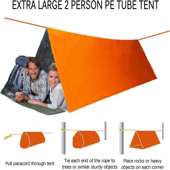 Wytrzymały i wytrzymały namiot wykonany z polietylenu (PE) z systemem asekuracyjnym. Doskonały produkt ratunkowy do aktywności na świeżym powietrzu i w sytuacjach przetrwania.