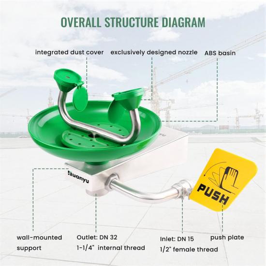 A: Przepływ wody w natrysku do oczu United Nations Contribute Basin Shower Eyewash wynosi ≥12 l/min, a czas trwania wynosi >15 minut. Dzięki temu użytkownik otrzymuje wystarczającą ilość wody do spłukania i ochrony.