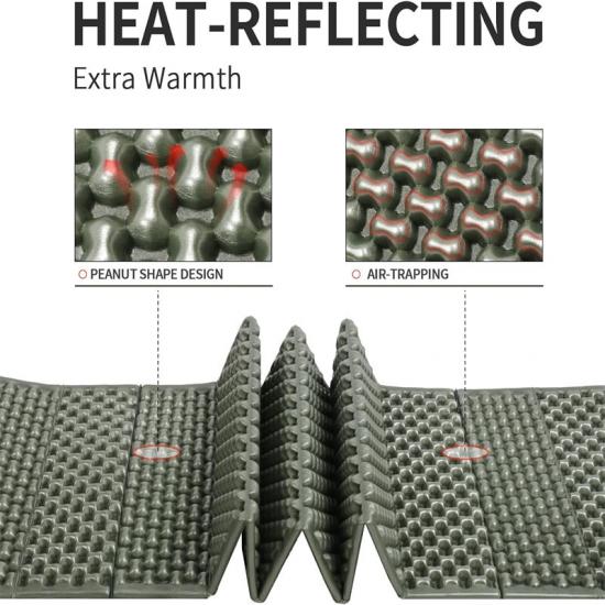 Ta wojskowa, lekka mata do spania wykonana jest z lekkiej pianki IXPE, która jest miękka i przyjemna w dotyku oraz charakteryzuje się dobrymi właściwościami termoizolacyjnymi. Ergonomiczna konstrukcja pianki o zamkniętych komórkach zapewnia wszechstronne wsparcie i komfort, dzięki czemu możesz cieszyć się wysokiej jakości snem nawet podczas stresującej i wyczerpującej pracy w nagłych wypadkach.