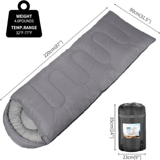 Wyprodukowano w Chinach. Śpiwory wykonane są z tkaniny poliestrowej ripstop 290T, co gwarantuje trwałość i niezawodność. Wnętrze wyściełane jest pianką poliestrową 240T dla zapewnienia komfortu. Śpiwór ripstop wyprodukowany w Chinach jest wypełniony tkaniną 400GSM, która zapewnia doskonałe ciepło. Wymiary śpiwora to 87x31,5 cala/220x80 cm, dzięki czemu doskonale nadaje się on do użycia w sytuacjach awaryjnych. śpiwór waży zaledwie 4 funty/1,8 kg, dzięki czemu jest lekki i łatwy do przenoszenia.