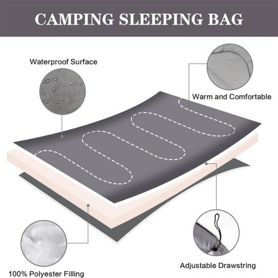 Śpiwór wykonany z poliestru Ripstop 290T wypełniony jest mikrofibrą podobną do puchu, która zapewnia do 51% więcej ciepła w porównaniu z tradycyjnymi materiałami. Zaawansowany proces produkcyjny sprawia, że śpiwór jest wygodny i przyjazny dla skóry, znacznie redukując ryzyko wychłodzenia przez wiatr. Śpiwór Made In China Ripstop zapewni Ci ciepłe i przytulne środowisko, zarówno w zimną noc, jak i w trudnych warunkach.