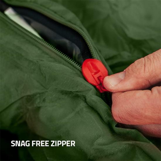 Wysokiej jakości dwustronne zamki błyskawiczne bez haczyków są bardzo wygodne w użyciu. Zaciągnięcie sznurka ściągającego na poduszce sprawi, że śpiwór będzie bliżej głowy, zapewniając dodatkowe ciepło w chłodniejsze dni. Dodatkowe paski zapinane na rzepy zapewnią Ci komfort i wygodę, bez nieoczekiwanego przesuwania się zamka.