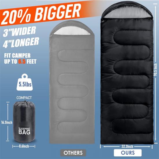 Zewnętrzna warstwa śpiwora Spaciou o wadze 4 funtów (ok. 1,8 kg) wykonana jest z wodoodpornego poliestru 210T, który chroni przed wiatrem i deszczem oraz zapewnia ciepło nawet w zimne i deszczowe dni. Dodatkowo, wewnątrz śpiwora zastosowano nową syntetyczną wyściółkę izolacyjną, która zapewnia dobrą izolację nawet w wilgotnych warunkach i zapobiega odczuciu wilgoci.