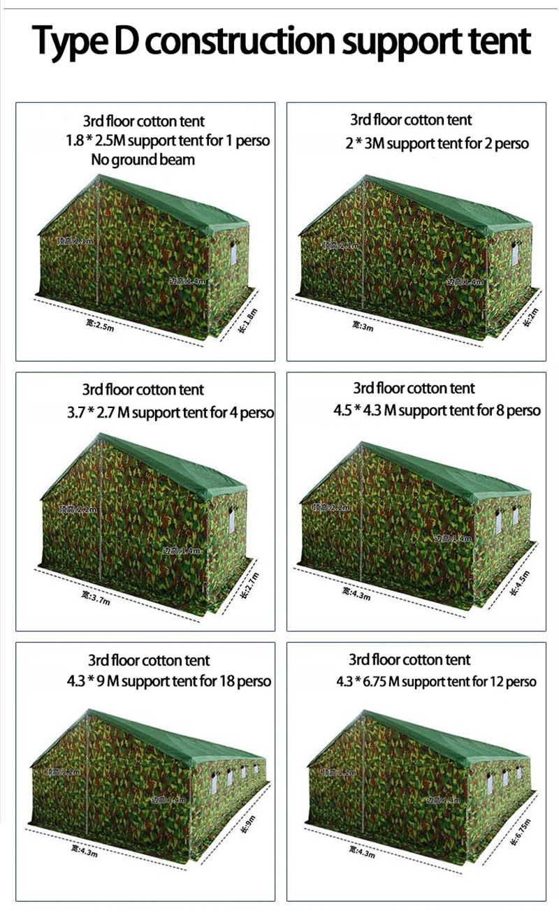 W przypadku katastrof, takich jak powodzie, pożary czy trzęsienia ziemi, liczy się każda sekunda. Nasz namiot ratunkowy ma ogromne znaczenie. To niezbędne narzędzie w sytuacjach kryzysowych, oferujące szybkie schronienie potrzebującym. Wojsko używa go do zakładania baz podczas operacji, a zespoły medyczne przekształcają go w strefy pomocy doraźnej. Jest on również kluczowym elementem darowizn dla Organizacji Narodów Zjednoczonych, zapasów magazynowanych przez rząd oraz działań pomocowych Czerwonego Krzyża. Wykonany z najwyższej jakości materiałów wodoodpornych i wiatroodpornych, jest odporny na trudne warunki atmosferyczne. Dzięki szerokiej gamie kolorów możesz wybrać ten, który spełnia wymagania dotyczące widoczności. Jego przestronne wnętrze pomieści wiele zapasów i zapewni schronienie wielu osobom, odgrywając kluczową rolę w każdej akcji ratunkowej.