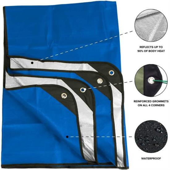 Aluminiowa powierzchnia odblaskowa wodoodpornej osłony przeciwsłonecznej Survival First Aid może odbijać do 90% światła