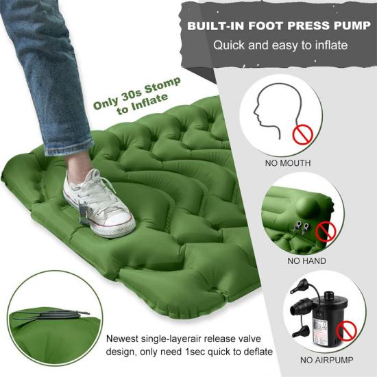 Nadmuchaj i spuść powietrze z produktu. Nadmuchiwana mata do spania z powłoką TPU zapewnia komfortowe warunki do spania.