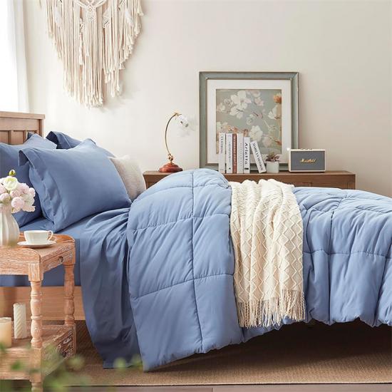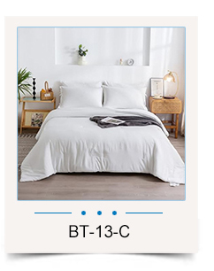 A: Dwukolorowe prześcieradła charytatywne ONZ. Klasyczny kwadratowy wzór pikowania skutecznie zapobiega przemieszczaniu się wypełnienia po praniu i użytkowaniu.