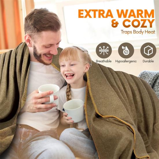 WESPRZYJ NAS, ABY POMÓC: Dla tych, którzy tego potrzebują, ten wełniany koc o wymiarach 200*160 cm zapewnia ciepło i wygodę. Można je przekazywać do ośrodków społecznościowych i organizacji charytatywnych, aby pomóc im przetrwać zimne noce.